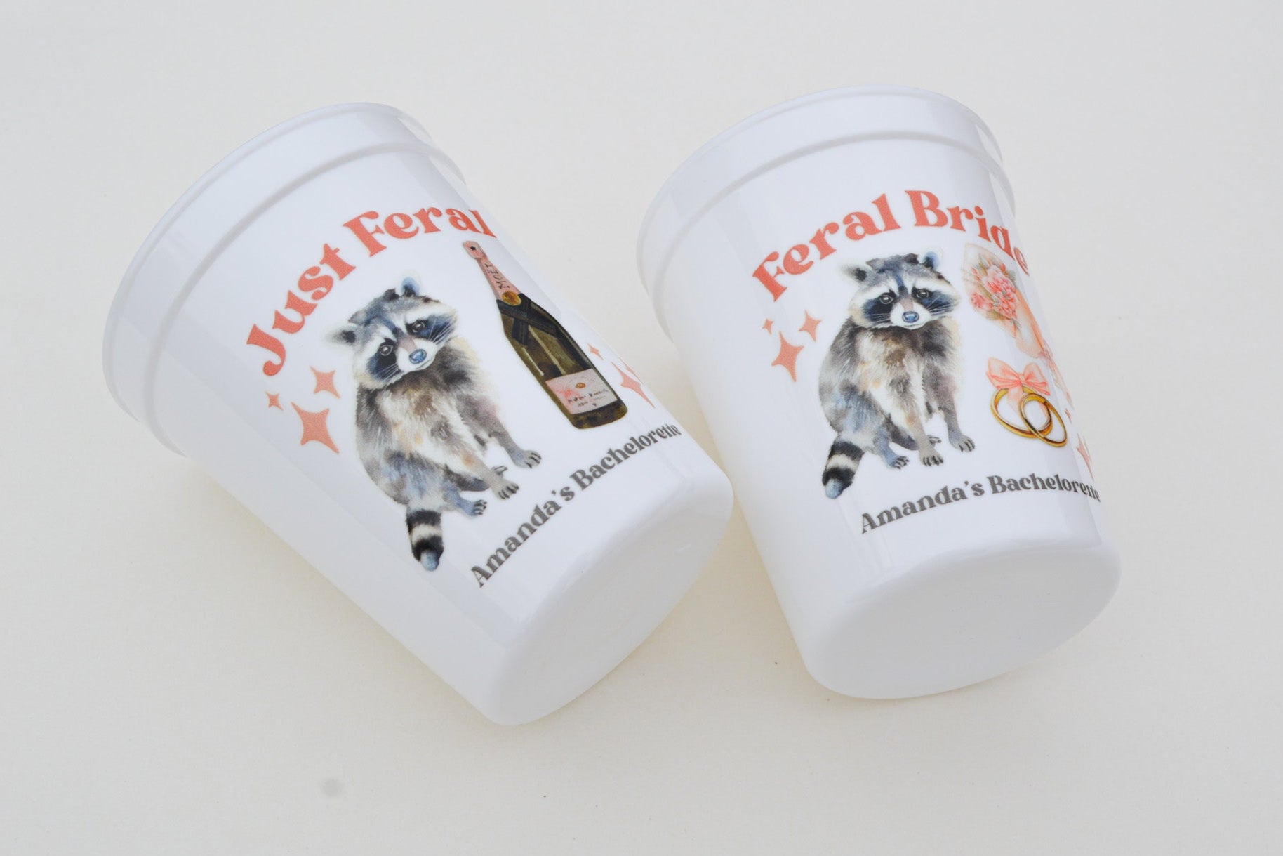 Feral Bride Bachelorette Party Cups: Raccoon Bridal Theme, Wild Bach Decor